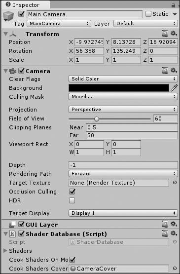 Unity中Inspector(检视)面板用于显示当前游戏场景中选中对象所拥有的所有组件,开发者可以在Inspector(检视)面板中修改摄像机对象的各项参数及属性设置,如图2.41所示。