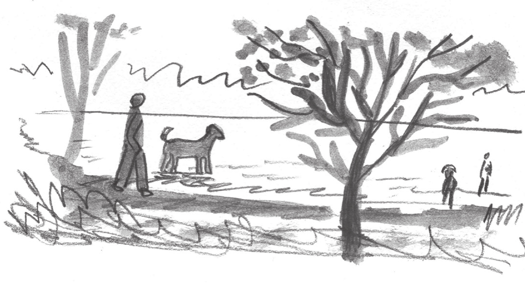 一个周末,我把狗带到了郊外的森林里。据说那是柏林养狗人每到周末都会聚集的场所。宽广的森林深处有个湖,人和狗就在湖畔享受着充实而悠闲的时光。