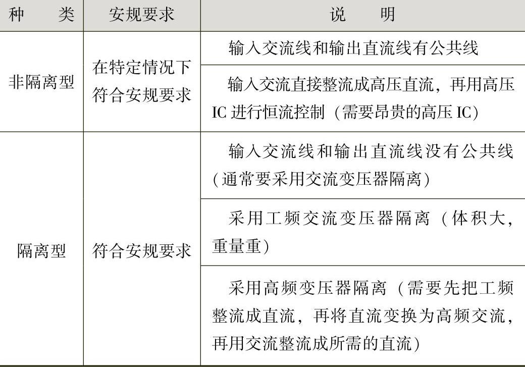 AC-AC市电交流恒流源可分为非隔离型和隔离型两大类,见表1-7。