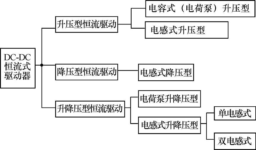 按照输入输出电压关系,DC-DC恒流式驱动器的分类如图1-25所示。