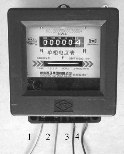 (5)单相电能表的接线。单相电能表接线盒里共有四个接线桩,从左至右按1、2、3、4编号。直接接线方法是按编号1、3接进线(1接相线,3接零线),2、4接出线(2接相线,4接零线),如图1-28所示。