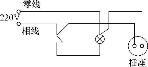 在日常生活和生产中,一只开关一盏灯一个插座或多个插座的线路也是很常见的,如图1-8所示。为了安全起见,有时可安装带开关的插座。