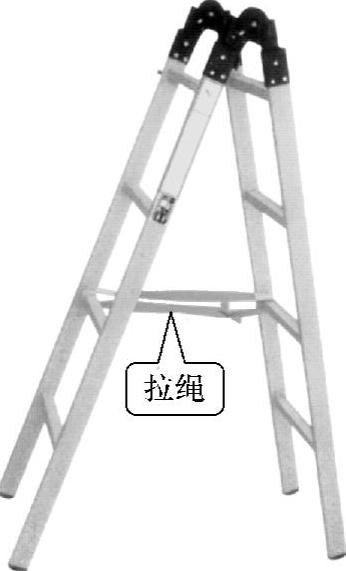 图1-9 人字梯应加装防滑拉绳