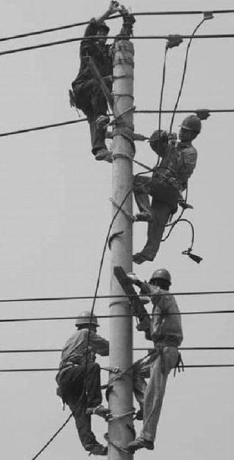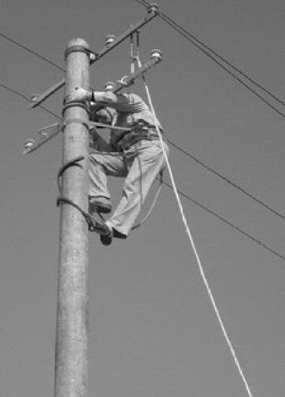(5)禁忌用脚扣登杆时不系好安全腰带,尤其是禁忌不把安全带可靠地绑扎在电线杆上。否则,难以保证在高空工作时的安全。