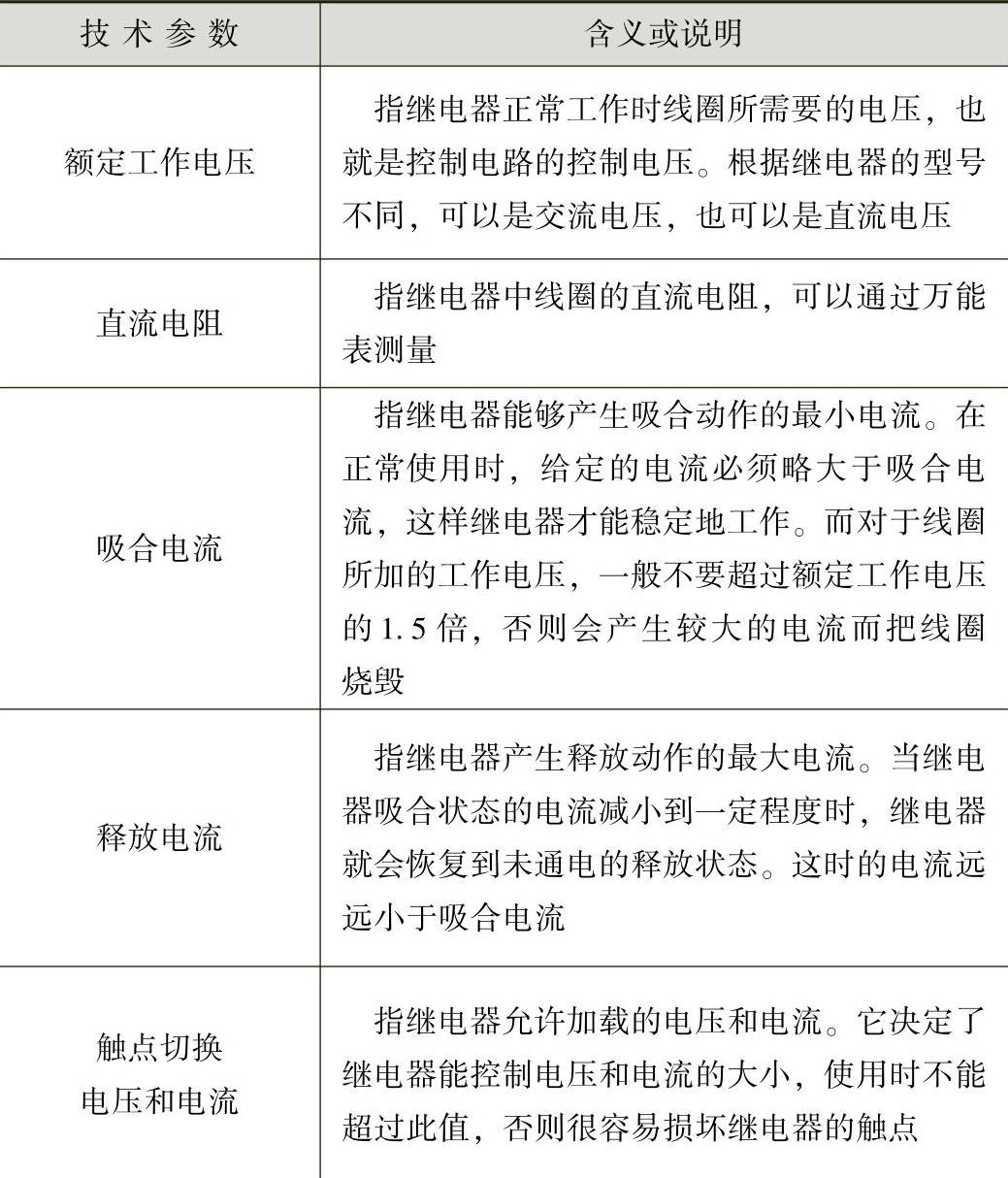 继电器的种类及型号很多,归纳起来,其主要技术参数见表2-3。