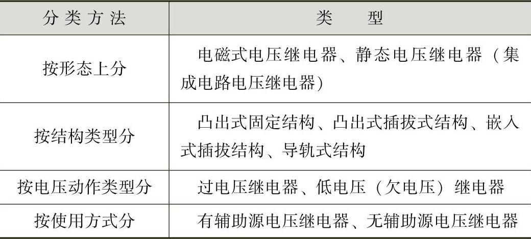采用不同的分类方法,电压继电器有多种类型,见表2-6。