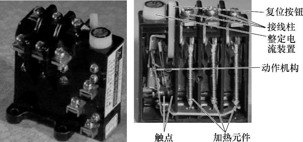 热继电器主要由热元件、触点、动作机构、复位按钮和整定电流调节装置等组成,如图2-5所示。