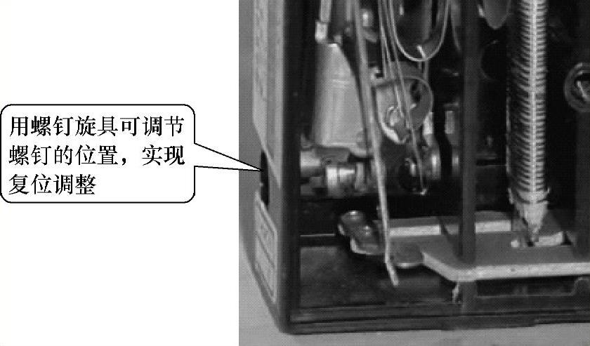 热继电器的侧面有一个调整螺钉,通过调整,可实现触点的自动或手动复位,如图2-8 所示。
