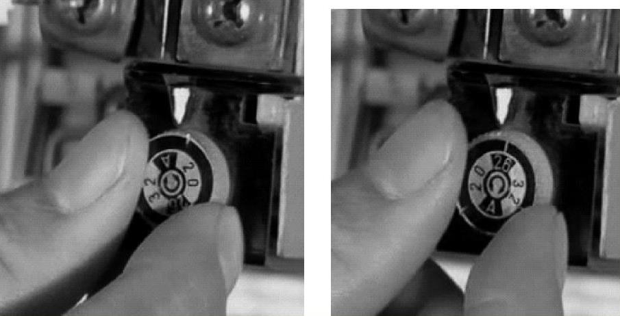 整定热继电器工作电流,是通过调节双金属片初始位置来实现的。整定电流值应是被保护电动机的额定电流值,其大小可以通过调节整定电流旋钮来实现,如图2-7所示。