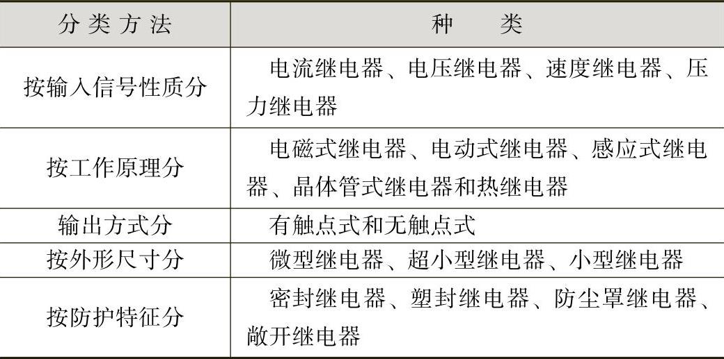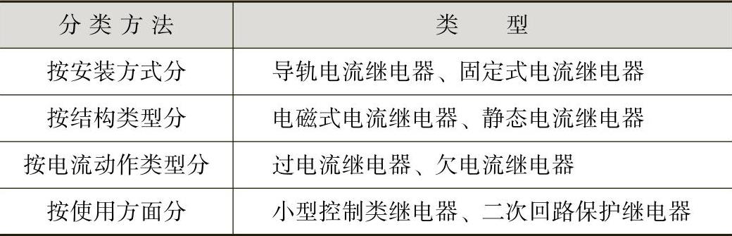 采用不同的分类方法,电流继电器有多种类型,见表2-5。