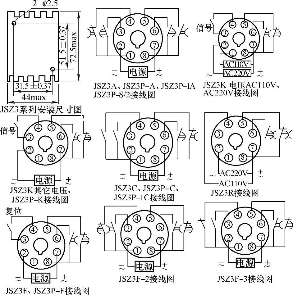 图2-10 JSZ3系列时间继电器安装接线图(续)