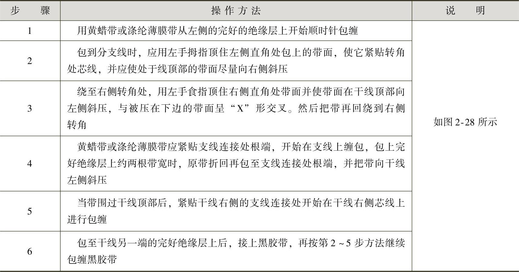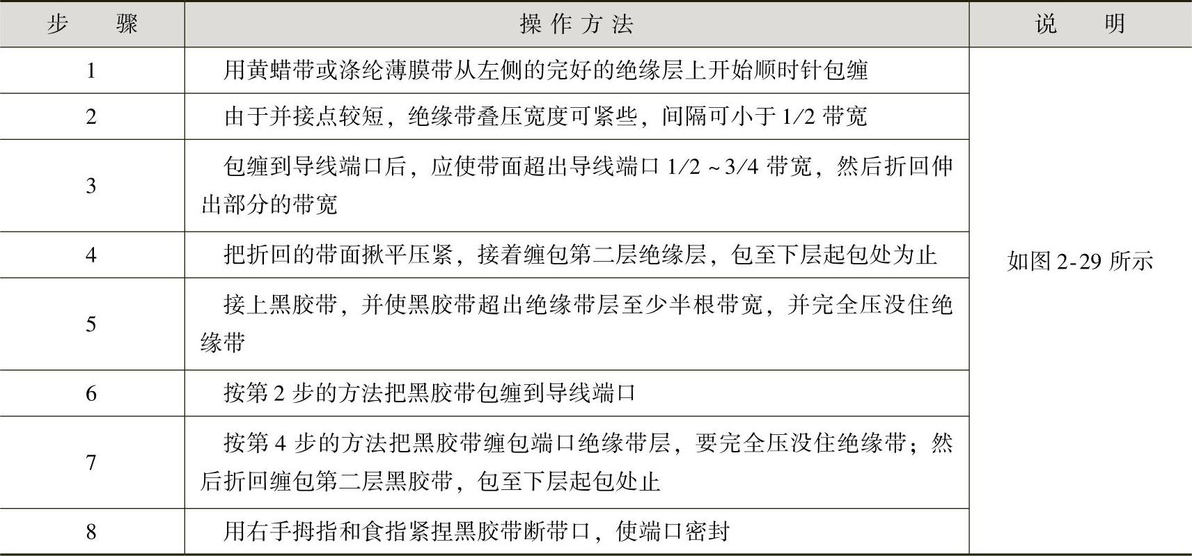 导线分支点绝缘层恢复的操作步骤及方法见表2-17。