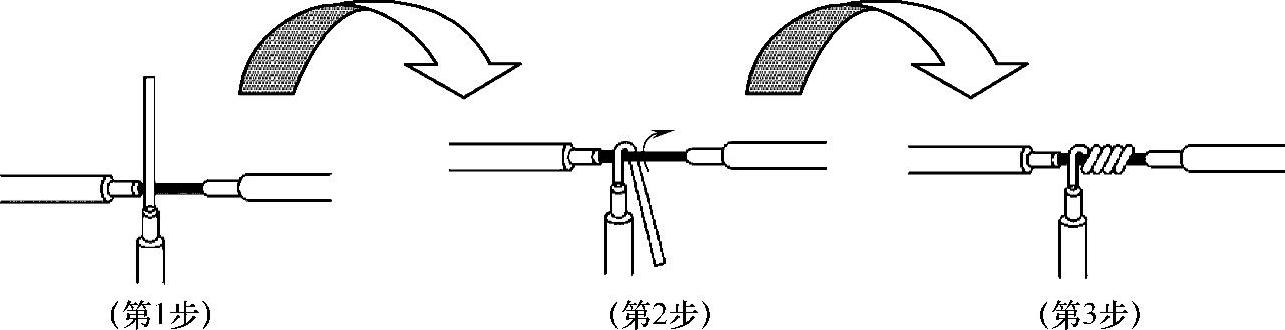 截面积较小(6mm 2 以下)的导线直接连接一般采用十字交叉法进行绞接,其操作方法及步骤见表2-12。