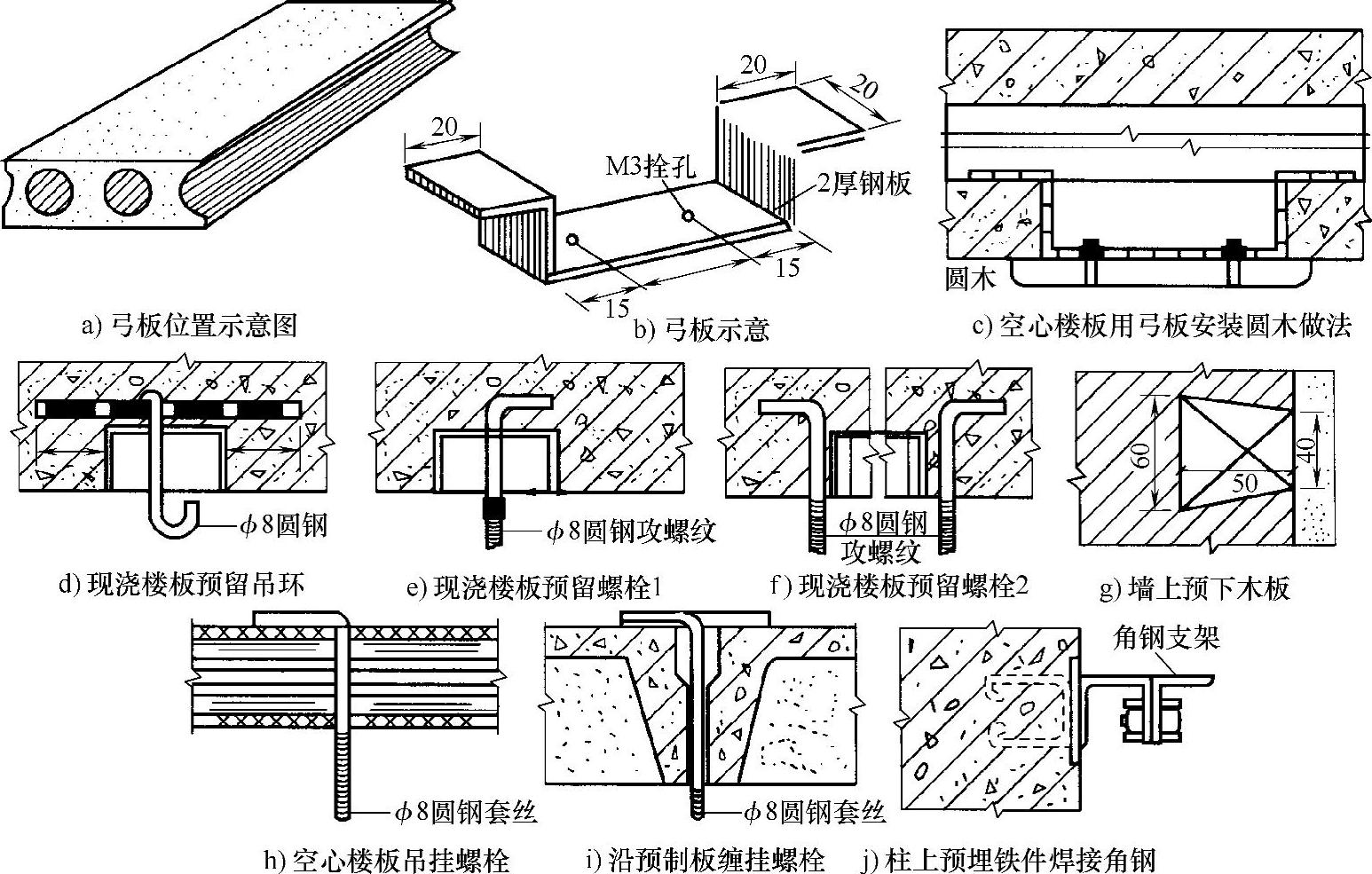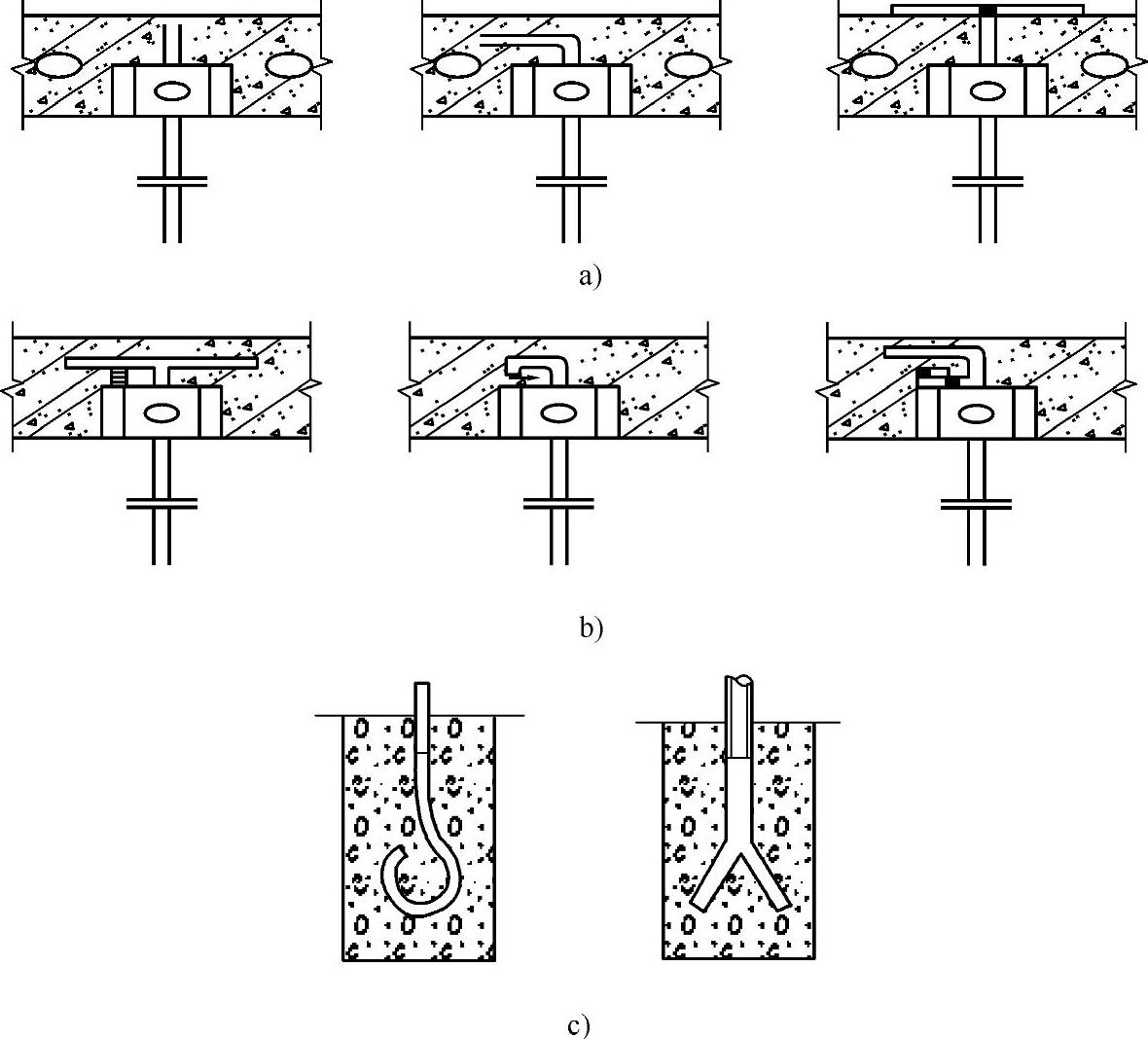图3-3 常用吊钩、吊挂螺栓预埋方法