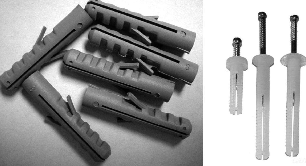 常用的尼龙胀管有两种:6mm×30mm和8mm×45mm,如图3-4所示。