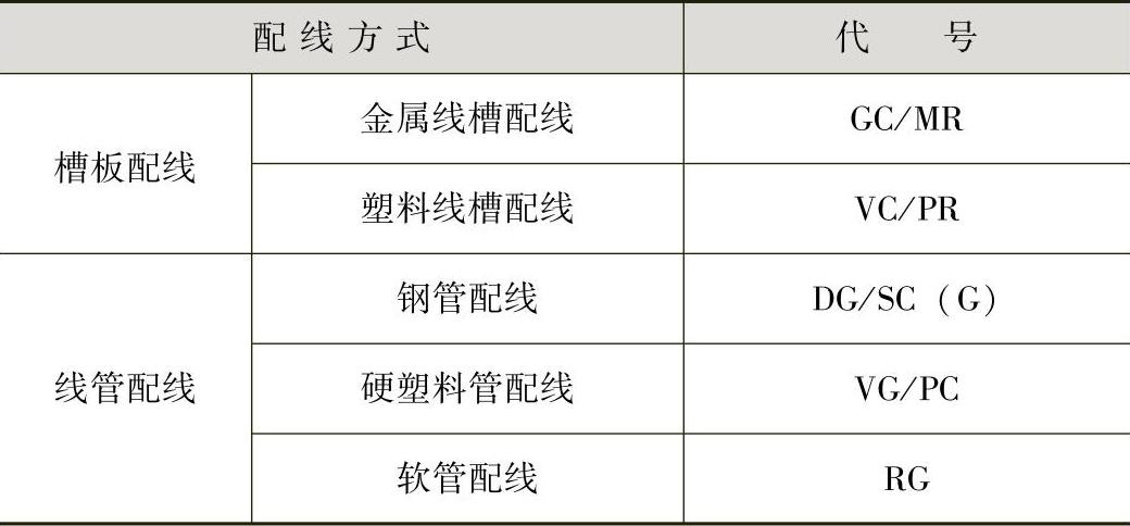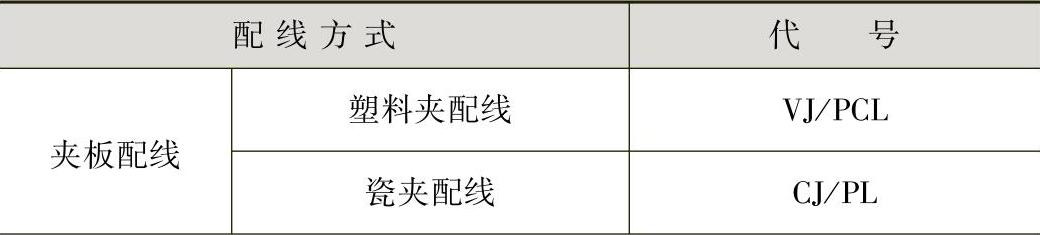 照明线路配线方式及代号(斜线后为英文字母代码)见表1-1。