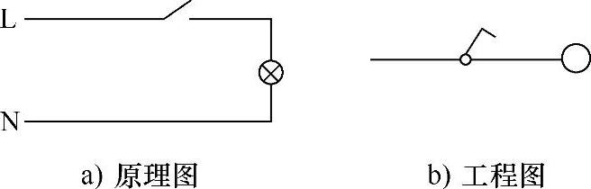 (1)一个开关控制一盏灯的表示法,如图1-3所示。