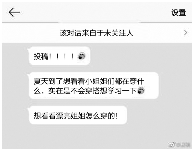 微博内容是“plmm的夏天穿搭”,下面附上用户的私信。