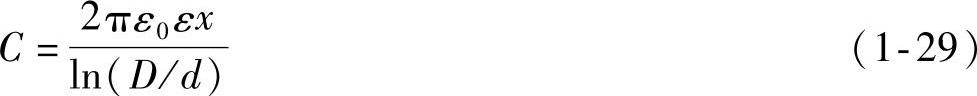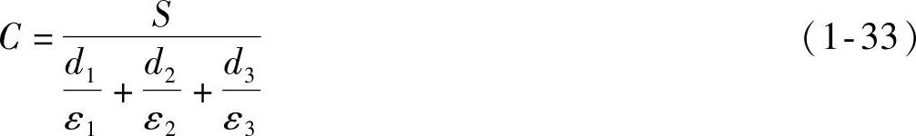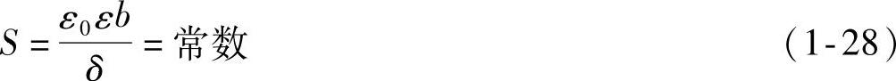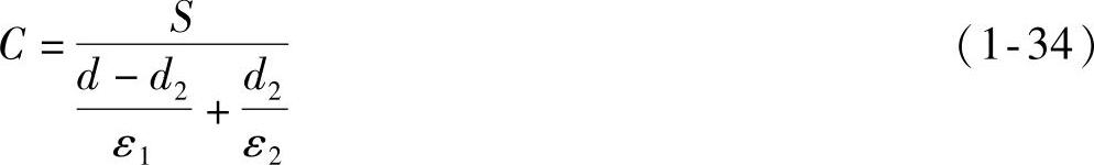 式中, ε 0 为真空介电常数, ε 0 =8.854×10-12F/m; ε 为两极板间介质的介电常数。