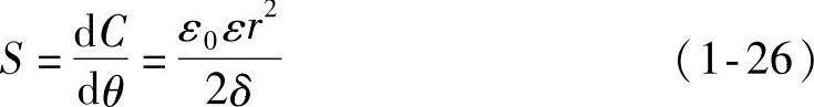 电容量的大小随可变的覆盖长度x而线性变化,它的灵敏度为