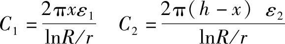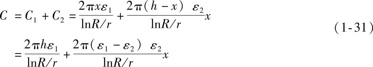当容器的尺寸和被测介质确定后,则 h 、 R 、 r 、 ε 1 和 ε 2 均为常数,令
