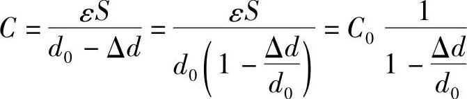 当活动极板1在被测物体的作用下向固定极板2位移Δ d 时,此时电容 C 为