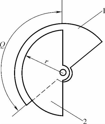 显然,若旋转动板1,改变圆心角 θ ,就会使电容量发生改变。