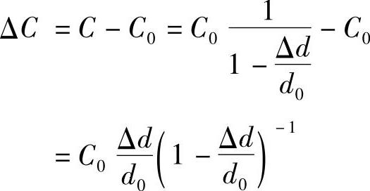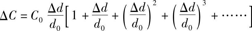 当电容器的活动极板1移动极小时,即Δ d << d 0 时,上式按泰勒级数展开为