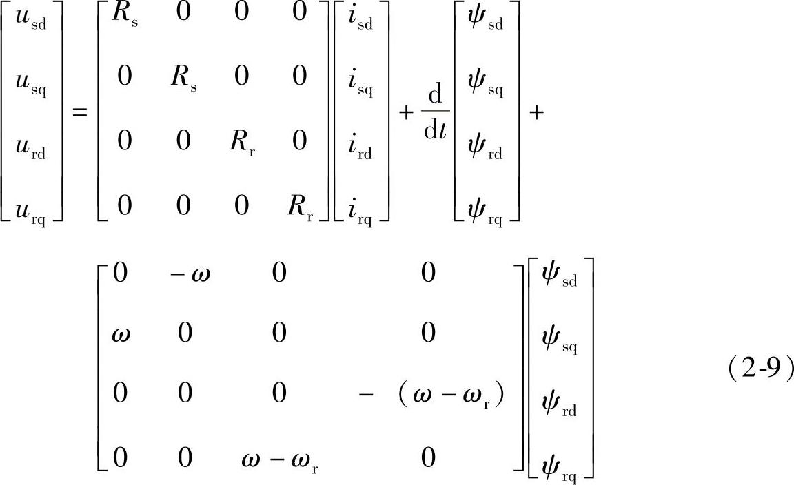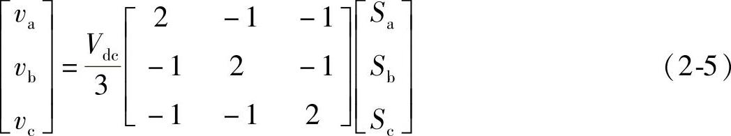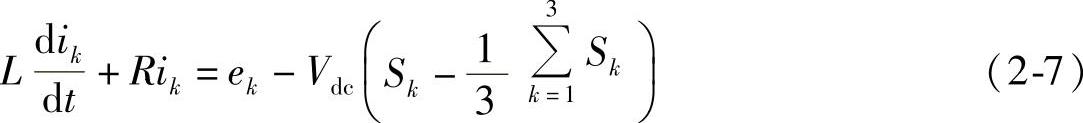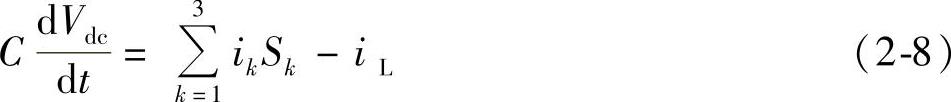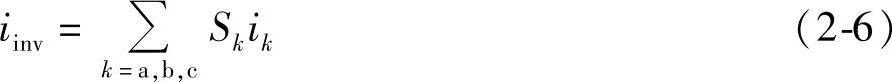 式中, S k 、 i k 分别为转子侧逆变器三相桥臂开关函数和三相负载电流。在本章中,双馈电机的转子作为逆变器的负载,因此 i k 即为双馈电机转子三相电流。