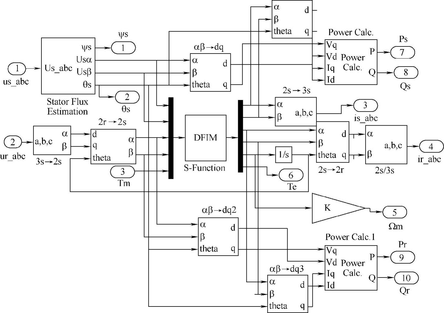 依据式(2-9)~式(2-11),可以编制双馈电机的MATLAB S-函数数学模型如图2-24所示。鉴于篇幅原因,省去了S-函数的源代码。
