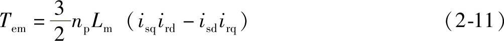 因此,当节距角和风速一定时,风力发电机只有运行在对应于最佳 λ 的转速下才能捕获到最大的风能。风力发电机与发电机轴之间通过增速比为1∶ N 的变速齿轮箱相互连接,通过控制双馈异步发电机的转速即可以实现最大风能的捕获。