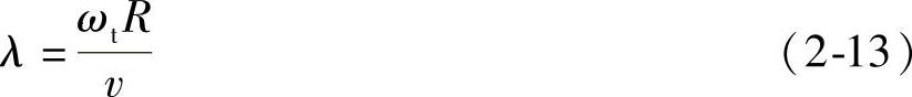 式中, ω t 为风轮旋转机械角速度; R 为风轮叶片半径。