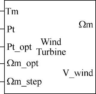 由于MATLAB中没有风力发电机模型,因此依据式(2-12)和式(2-13)采用Simulink基本模块搭建了如图2-25所示风力发电机的仿真模型。