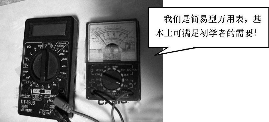 简易型万用表(见图1-5)功能很少,主要用来测量电阻、电流和电压。