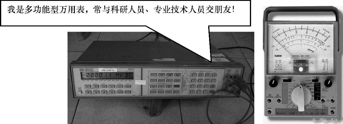 万用表按显示方式可分为指针式和数字式两大类(见图1-3)。目前,这两种类型的万用表均很多种型号。相对而言,指针式万用表性价比高,故使用者较多。