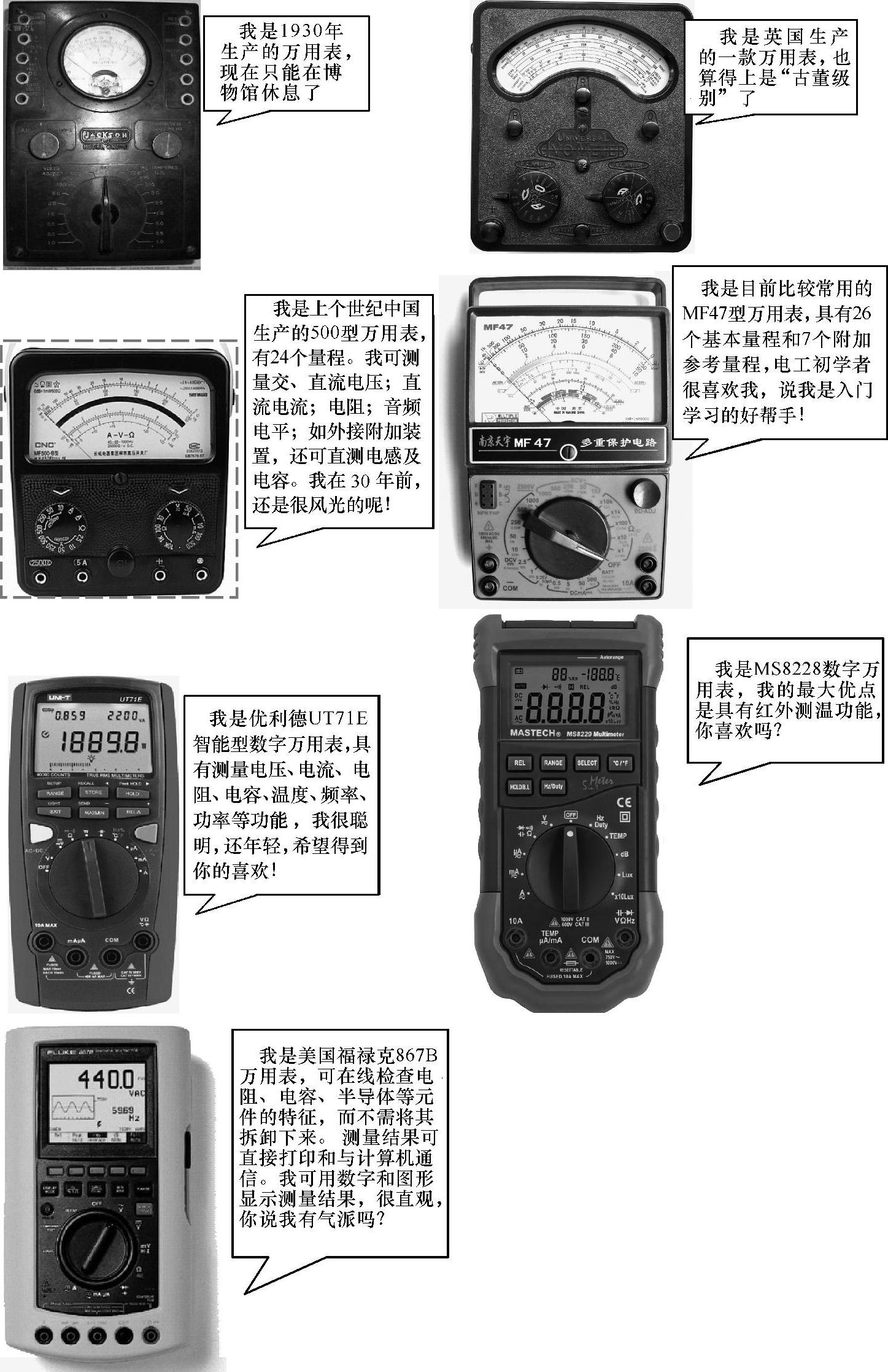 可见,万用表家族还真是人丁兴旺呢,他们共同组成了万用表大家族,每个成员都有自己独特的看家本领,难怪电工电子专业人员工作时离不开他们。