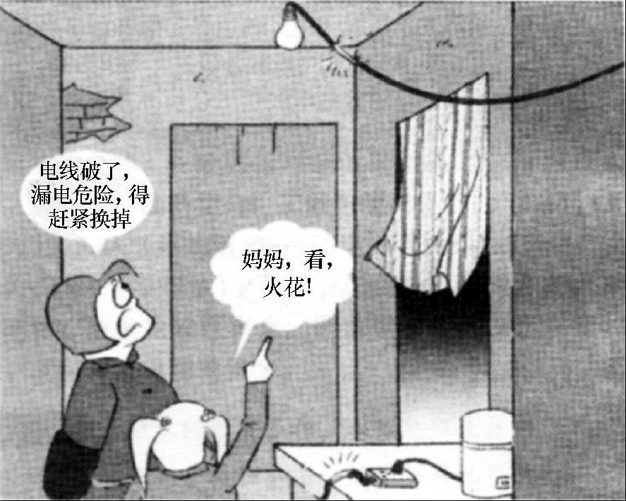 家中经常移动的电气设备(如电吹风、电风扇、电烤火炉、移动插座等),如果使用年限较长,电线经常弯折,容易出现老化破损现象。室内裸露的电线,也容易破皮。