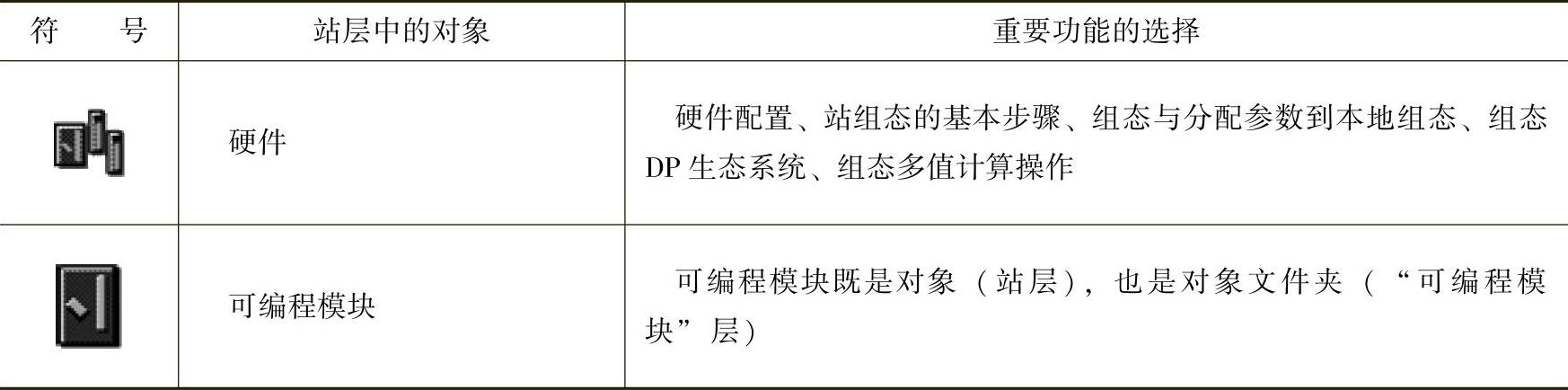 作为功能载体的对象,当打开对象时,将显示一个窗口,可在其中编辑对象。对象或者是一个文件夹,或者是功能的载体。其中,站是一个例外,它们既是文件夹(对于可编程模块),也是功能的载体(用于组态硬件)。