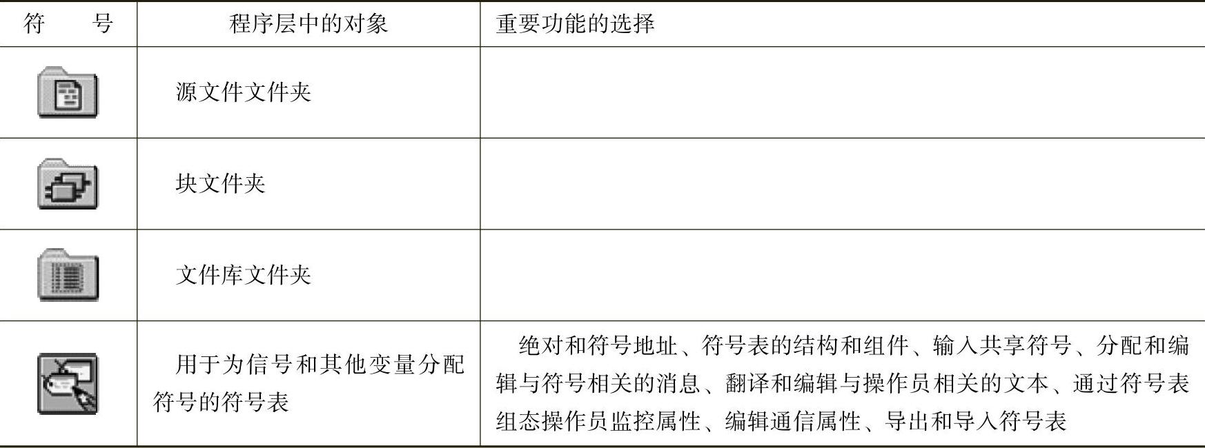 用于可编程模块的软件存储在对象文件夹中。SIMATIC S7模块在对象文件夹中被称为“S7程序”,S7程序是和应用有关的程序块、数据块、注释和符号的组合。建立一个程序,就建立了包括这些程序元素的一个结构。