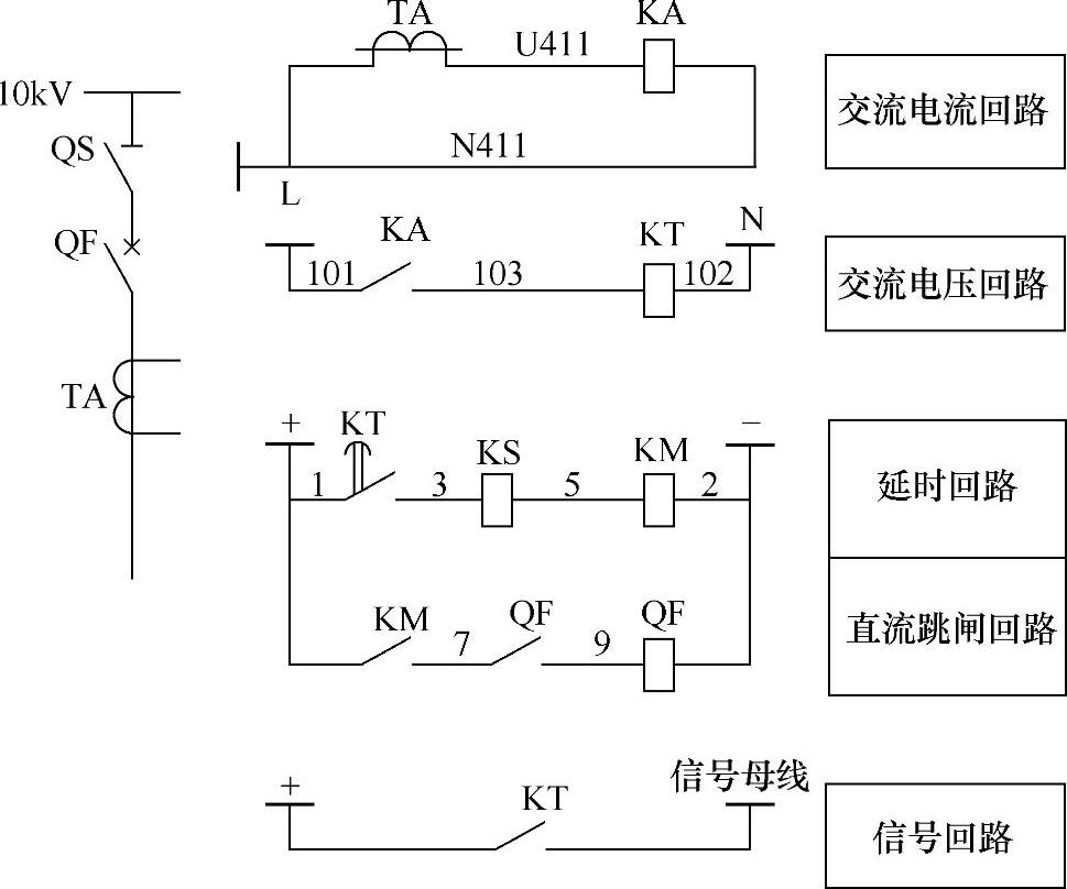 分开式表示法表示的元器件的各组成部分之间在功能上也是相关的,元器件图形符号的各部分分散在简图中,有功能联系的各部分之间用项目代号加以标记,如图2-6所示。