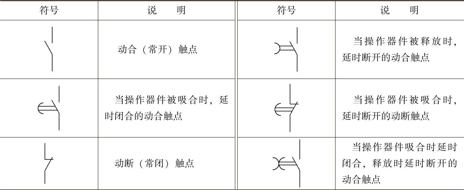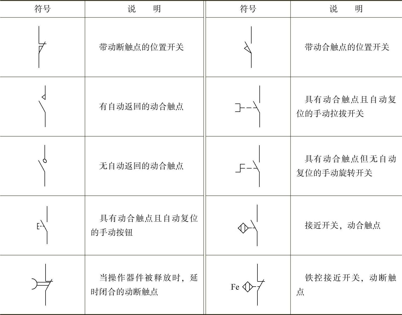 表2-6给出国家标准GB/T 4278.7-2008《电气简图用图形符号第7部分:开关、控制和保护器件》中部分常用触点的国家标准图形符号,供大家绘制电路图时选用。