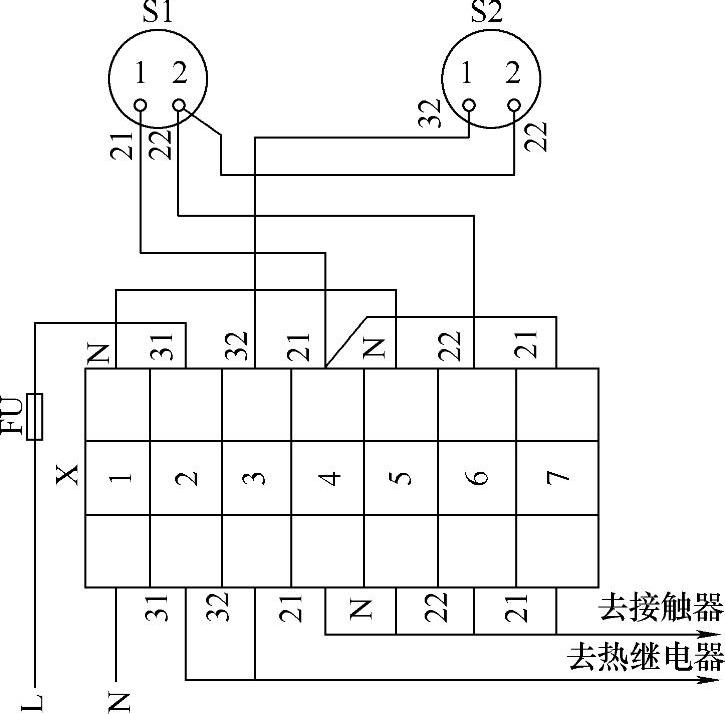 端子接线图(表)是用于表示成套装置或设备的端子及其与外部导线的连接关系的图(表),通常不包括单元或设备的内部连接,但可提供与它相关的图样编号。端子接线表可以和接线图组合起来绘制在一起,如图2-12所示,图中的端子接线板为X。端子接线也可单独用端子接线表绘制,见表2-8。