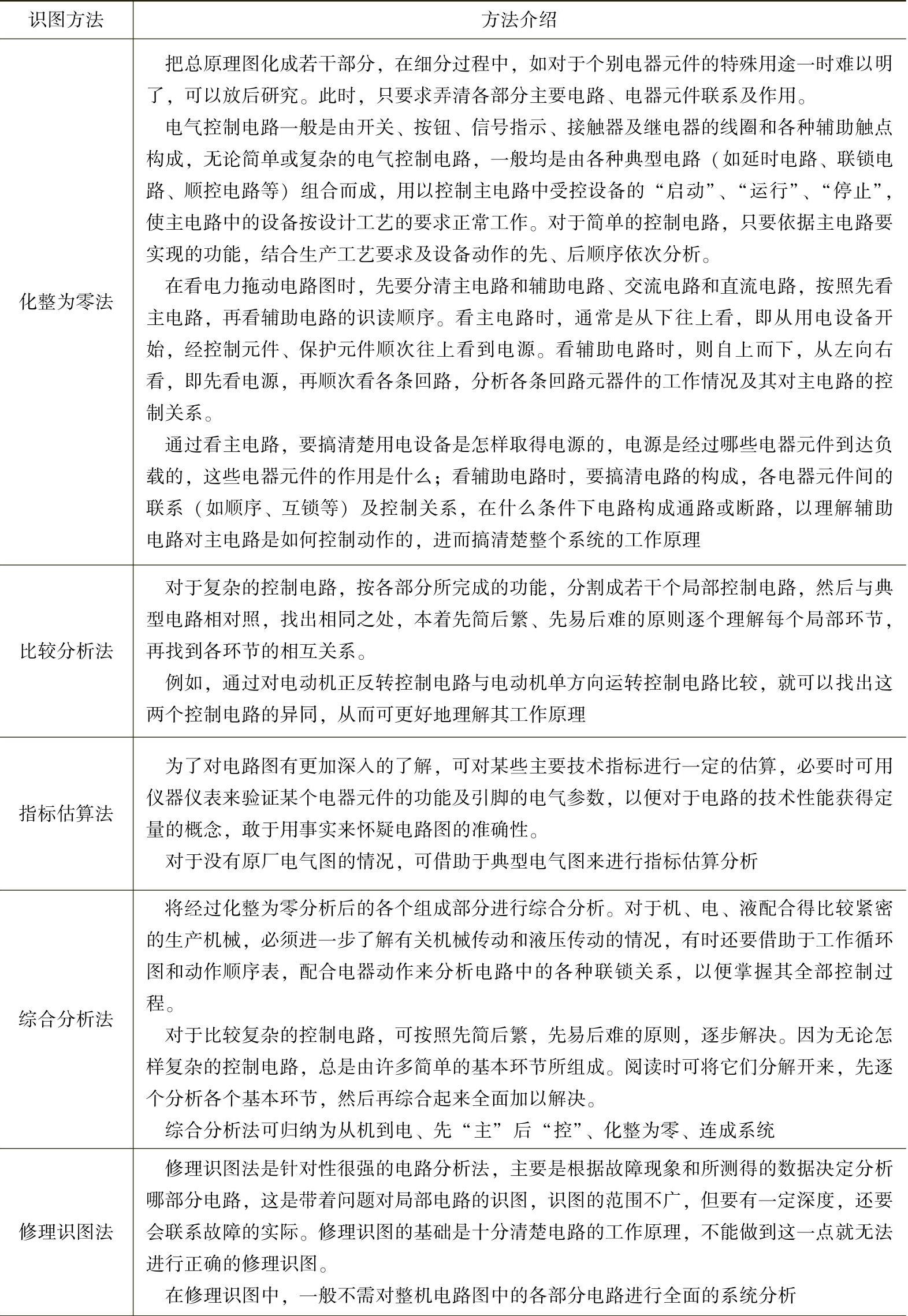 由于电气图涉及的知识较多,电气图的复杂程度不同,其读图方法也有所差别。每个人都有自己读图的习惯和方法,但读图的目的都是一样的,都是要理解电气设计人员的设计思想,掌握电气设备的工作原理和性能,为电气系统和设备的安装调试及维护管理打下坚实的基础。