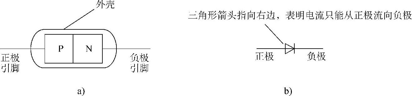 a)二极管结构 b)二极管符号