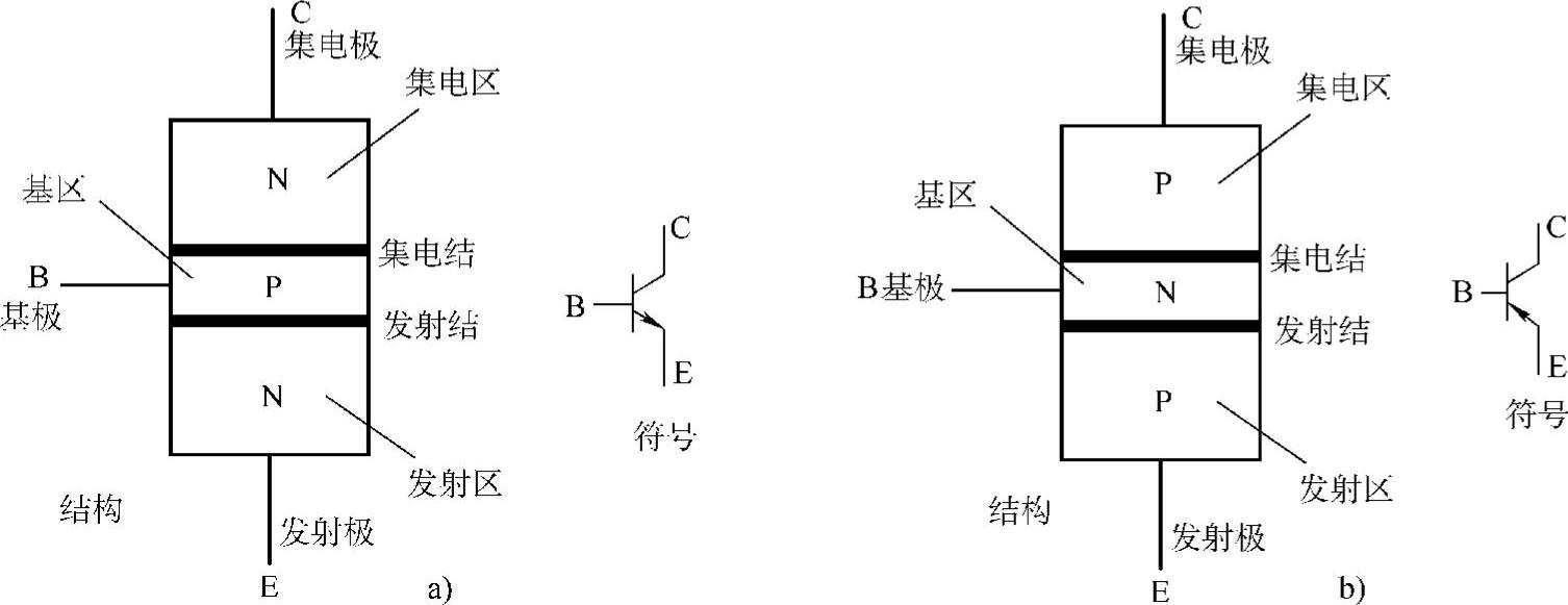 a)NPN型晶体管 b)PNP型晶体管