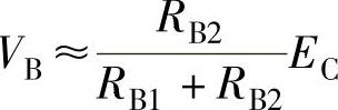 R B1 和 R B2 分别为上、下偏置电阻,电源电压经过 R B1 、 R B2 串联分压后为晶体管提供基极电位 V BQ 。