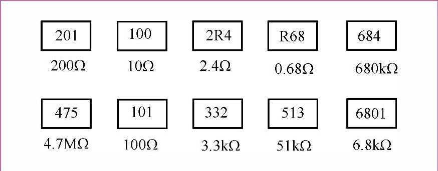 图1-6 常用贴片电阻器的标注