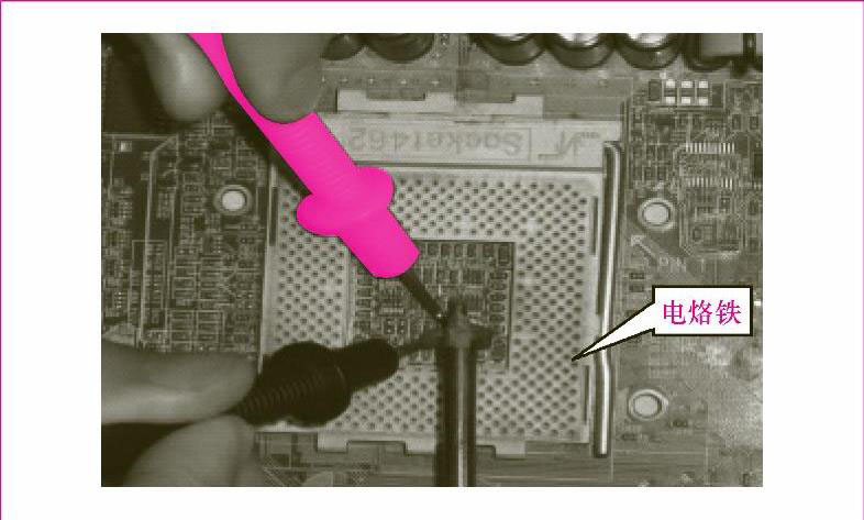 在常温测试正常的基础上,即可进行加温检测,将一热源(例如电烙铁)靠近正温度系数热敏电阻器对其加热(见图1-26),同时用万用表监测其电阻值是否随温度的升高而增大,如是,说明热敏电阻器正常;若阻值无变化,说明其性能变劣,不能继续使用。