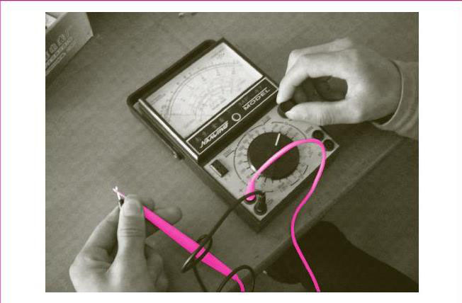 2)测量电位器滑动片与电阻体接触是否良好。按照图1-22b所示,将万用表的表笔分别接在活动端和一个固定端,同时缓慢地旋转电位器的旋轴,从一个极端转至另一个极端,反复调两次,万用表测出的阻值应在“0”和标称阻值之间变化。如果在电位器旋轴转动过程中,万用表的指针有跳动现象,说明可变触点接触不良,这样的电位器不宜使用。