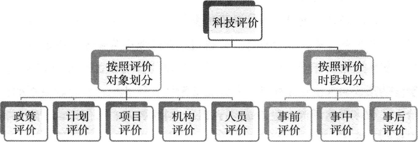 国外科技评价按照评价对象分为政策评价、计划评价、项目评价、机构评价和人员评价;按照评价时段又可分为事前评价、事中评价、事后评价三种(见图3-3)。其中,美国、德国、法国、日本、英国、瑞士、韩国等国都进行事前、事中、事后的连续评价,加拿大侧重对项目的后评价和计划项目的中期评价,瑞典、马来西亚比较重视计划项目的事中评价,但马来西亚同时也会有选择地进行项目的后评价。